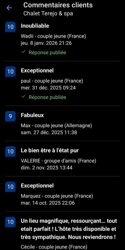 Retrouver les derniers avis booking verifiés - 9,7 / 10 (173 AVIS )